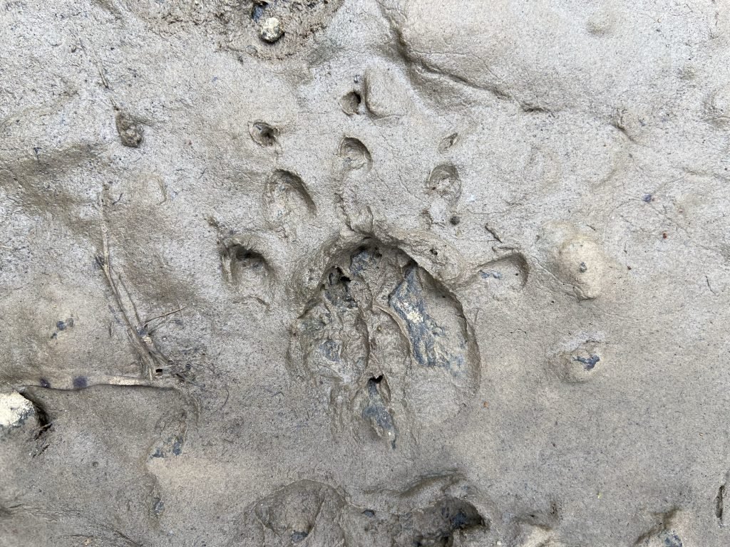 Everything’s just covered in mud down near the banks of the river now. It’s a very sticky kind of mud. The mud makes for some interesting tracks though. I’m wondering…