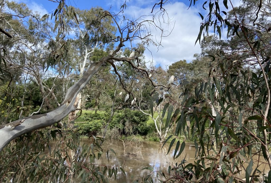 There’s ducks, there’s pigeons, and there’s herons flying over. I can hear the corellas. I can hear the crows, the magpies and the sparrows. I can hear the honey eaters…