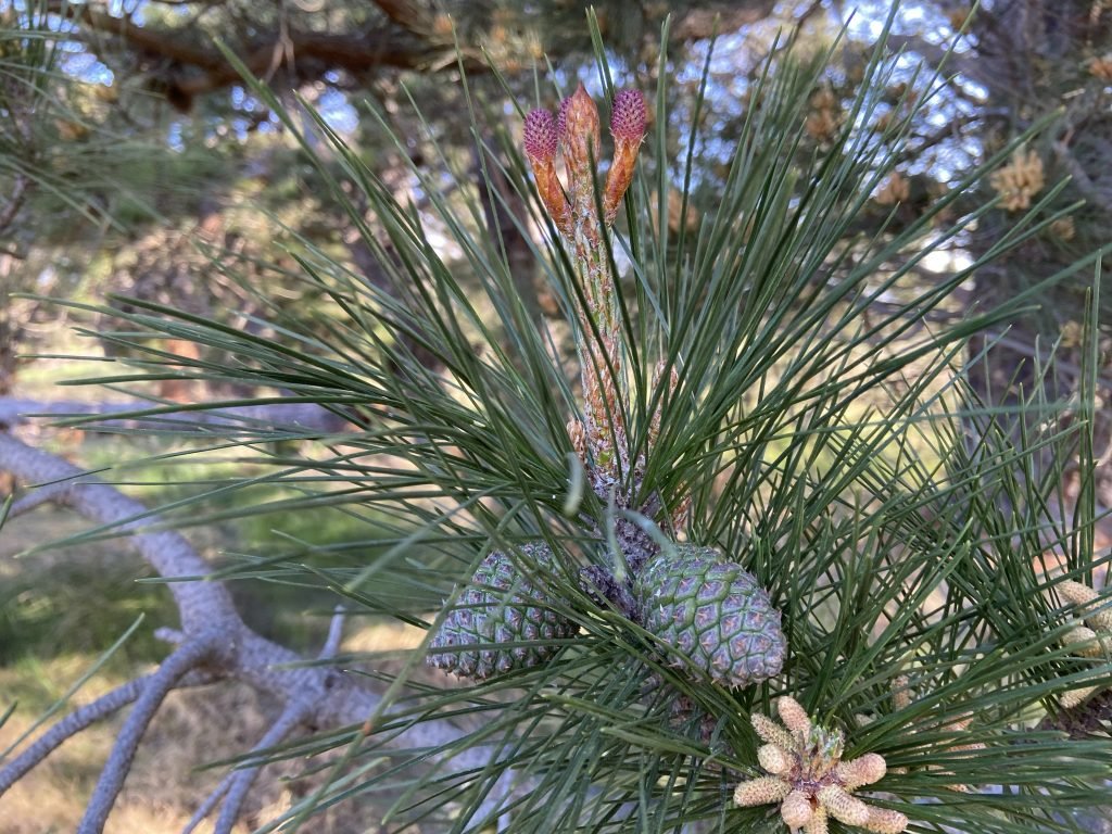 It looks like the acacias are in flower here too. The whale’s tail tree looks quite different now. It has the yellow flowers on the bank behind it. But what…