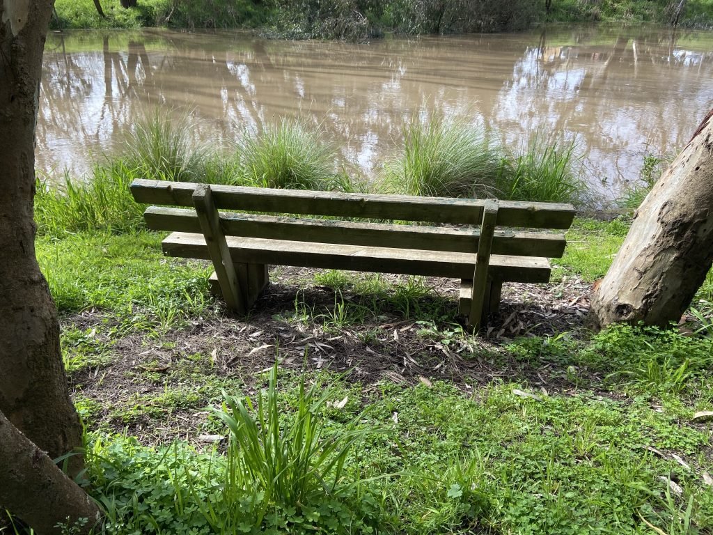 The river is still up. It’s only a meter or two from Private Bench. I really like it when the river is like this. I love this Bench when the…