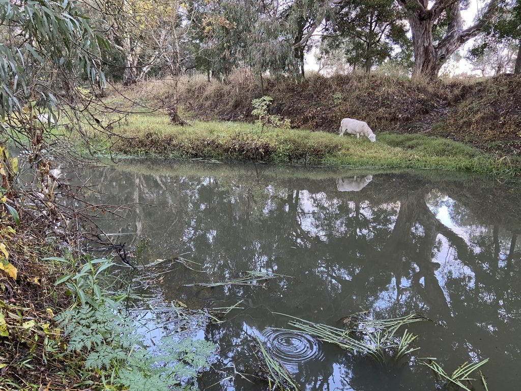 There’s two sheep down by the river today. They must have gotten out of their field. They’re taking their chance to gobble up the lush grass by the river. A…