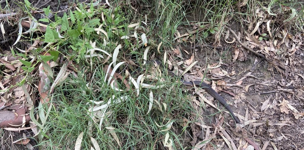 I just walked carefully along the path where I saw the snake the other day. Predictably, there was no sign of the snake at all, but I’ll probably always be…