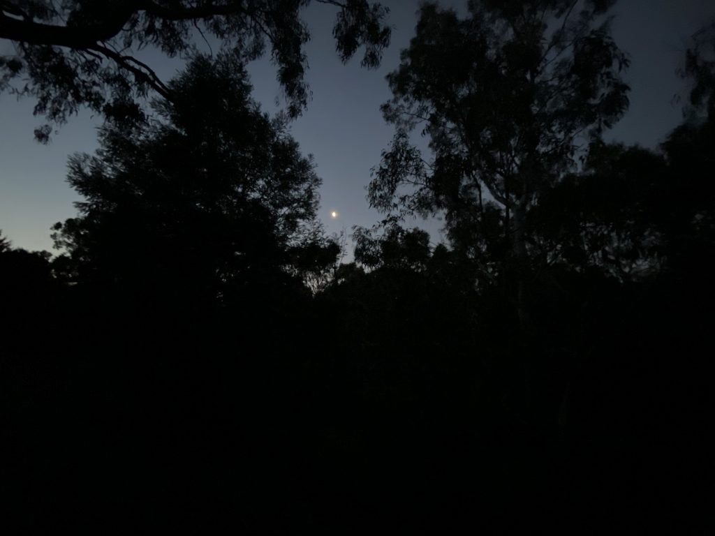 I love it after the sun’s gone down, when you’ve got the moon and the stars out already, but there’s still the glow on the horizon. Tonight the glow is…