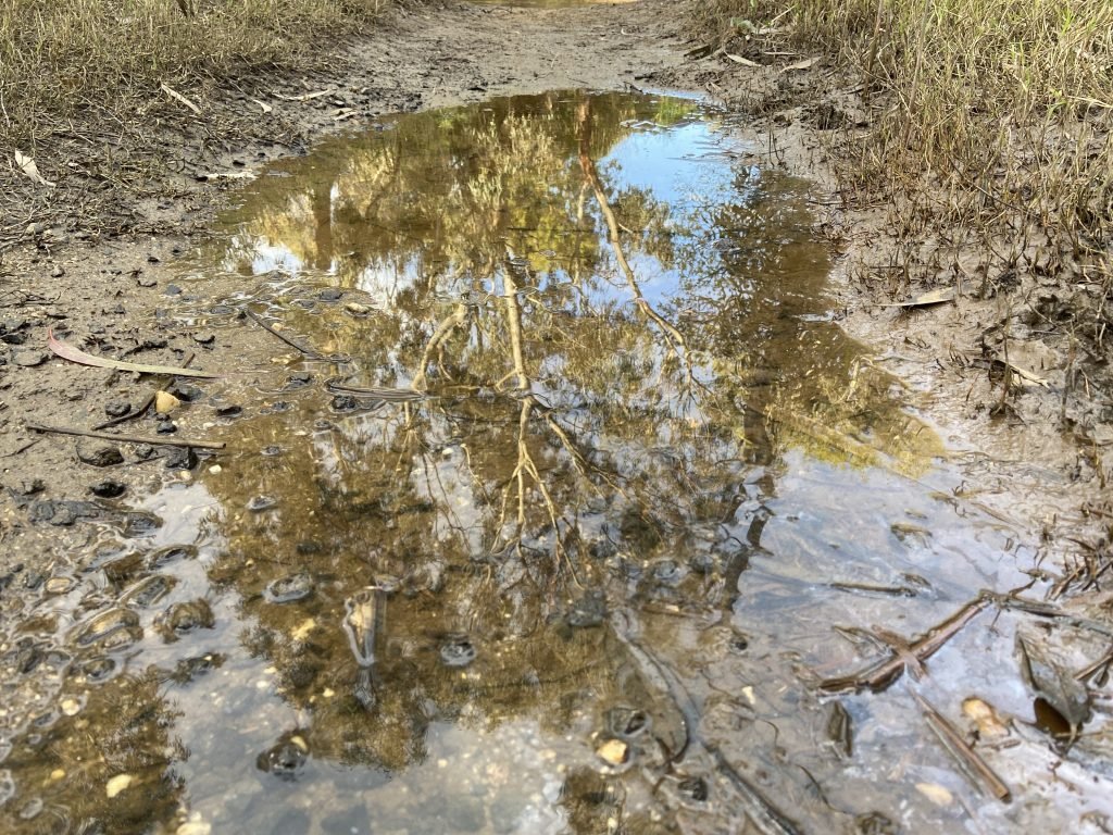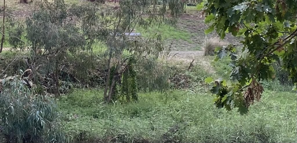 There’s lots of birds at the Blue Wren Bench. I saw a Kingfisher, an Azure Kingfisher, flashing through the trees. His iridescent blue back and his little buff chest shining…