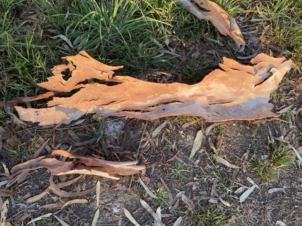 One of the trees down by the river is shedding its bark in huge, curled sheets. The one in the picture is about the size of my leg. But there’s…