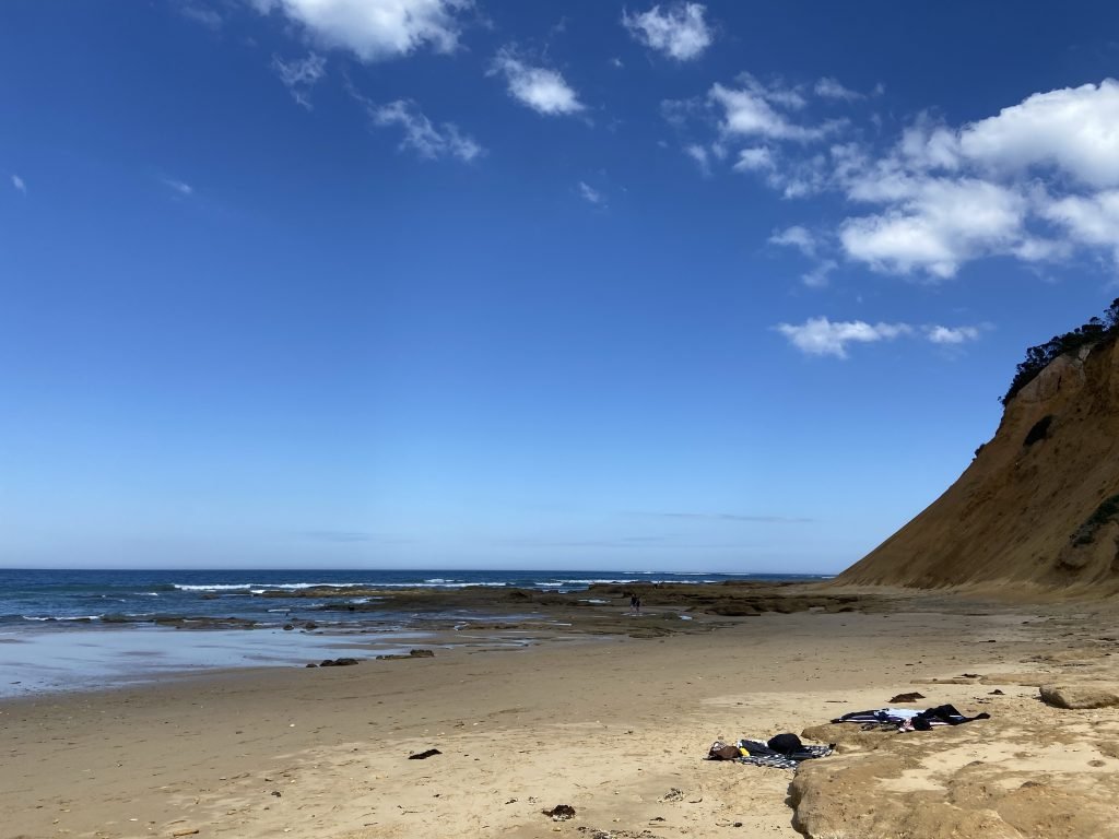 I haven’t been past this bench in years. I used to come to the beach here a lot, but I never sat on the bench on the clifftop above. Today…