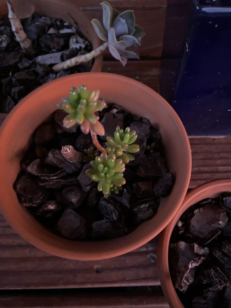 The sunset is very pink tonight. It’s making everything look pink. All of my pot plants, the bucket of apples we’ve picked to make apple pie filling to put in…