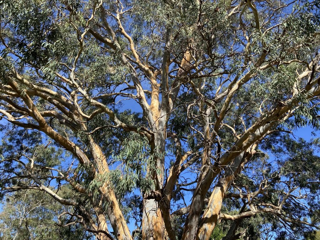This bench is beautiful. There is this perfect blue sky above and a gentle breeze in the gum tree’s leaves. The bird songs out here are different. There’s a tree…
