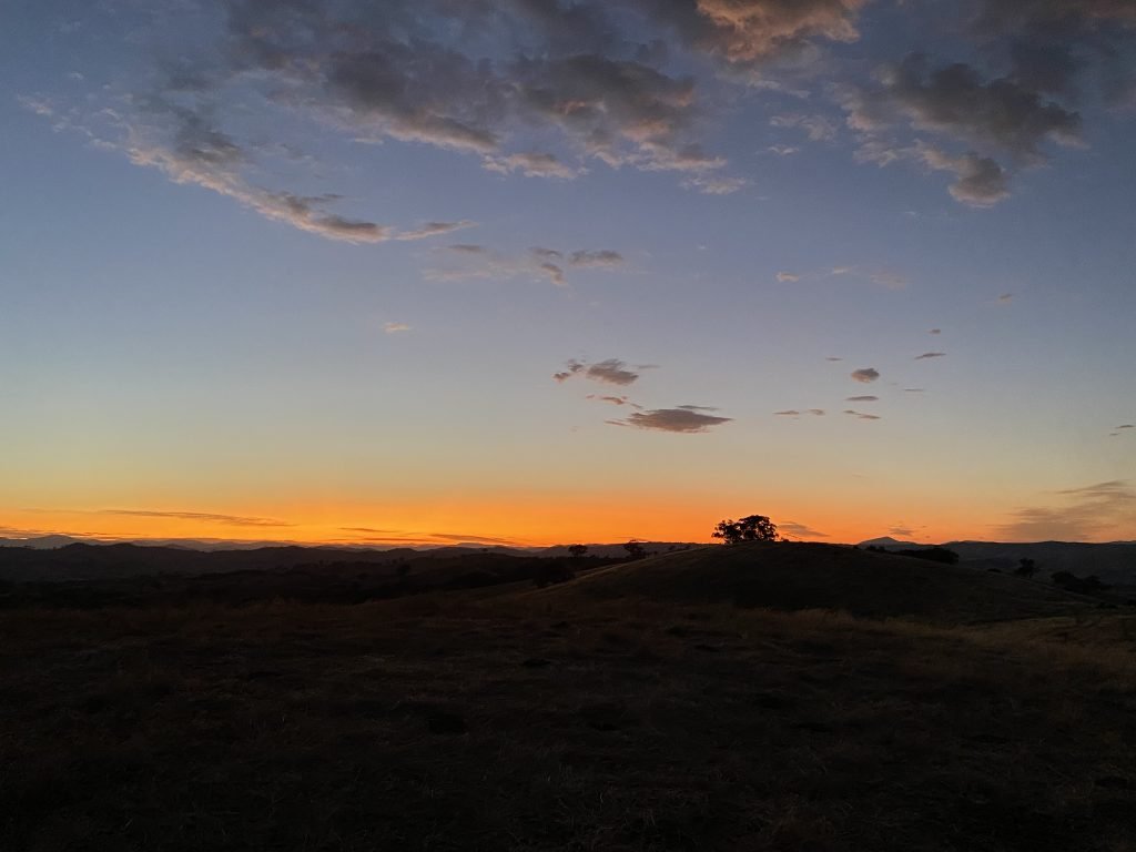 I’m here, at the very top of the hill at the first light of day. It is sensational. The air is warm. The sun is coming. I’m sitting here waiting…