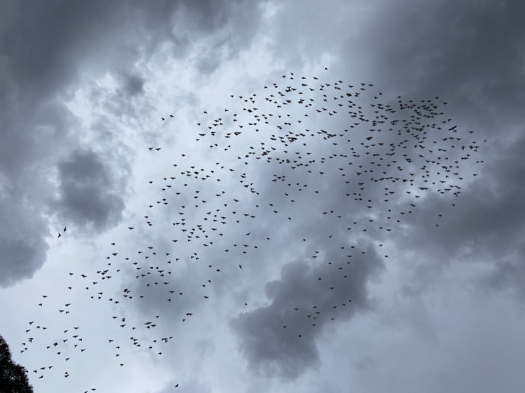 There’s a big thunderstorm coming. It rained quite as lot yesterday. I think it’s going to rain again soon. There’s still a lot of birds around though. I’m watching the…