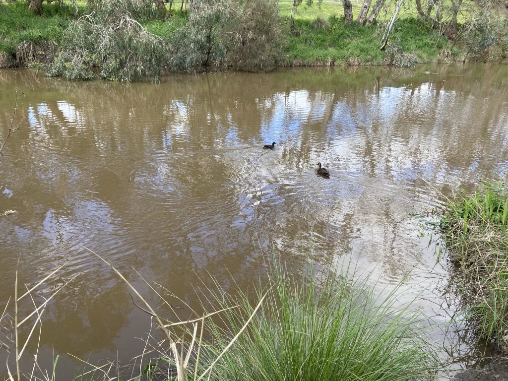 There’s a gentleness down by the river today. There is no wind. The morning sun is gentle, and glimmering on the surface of the river. The river’s flowing more gently…