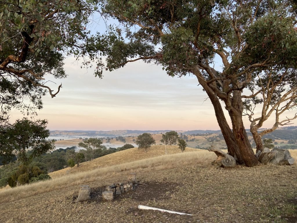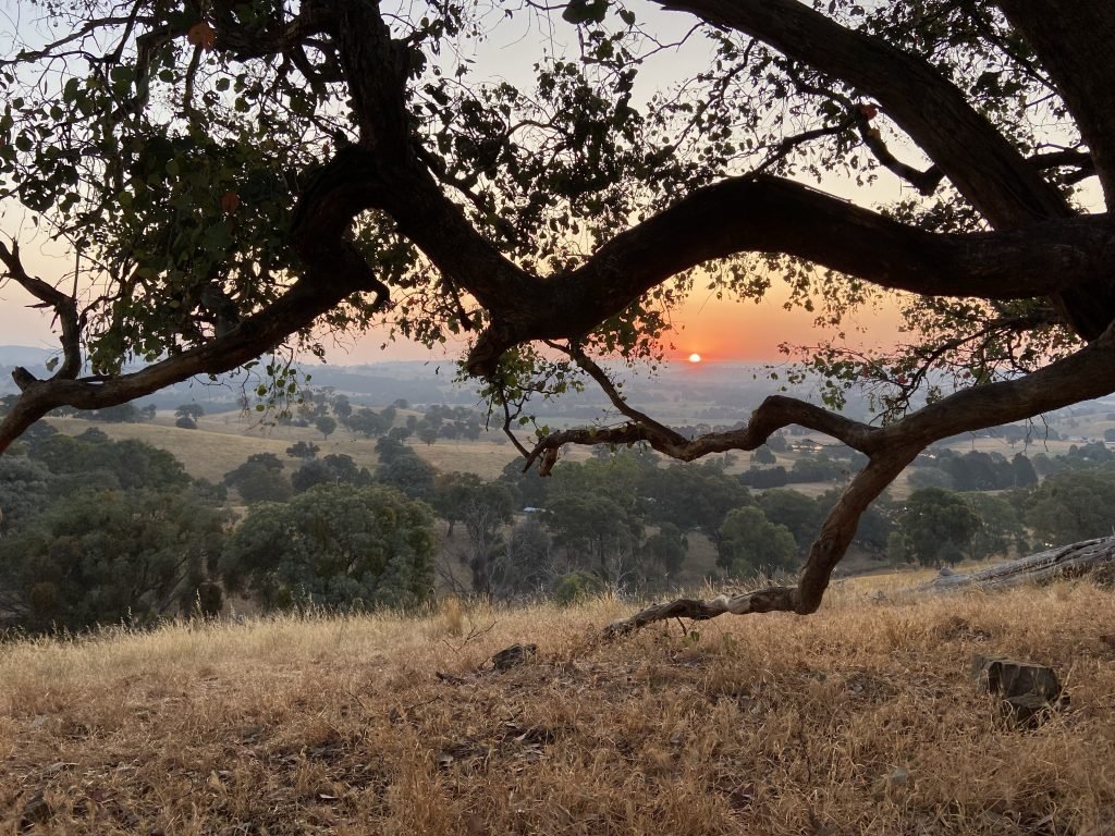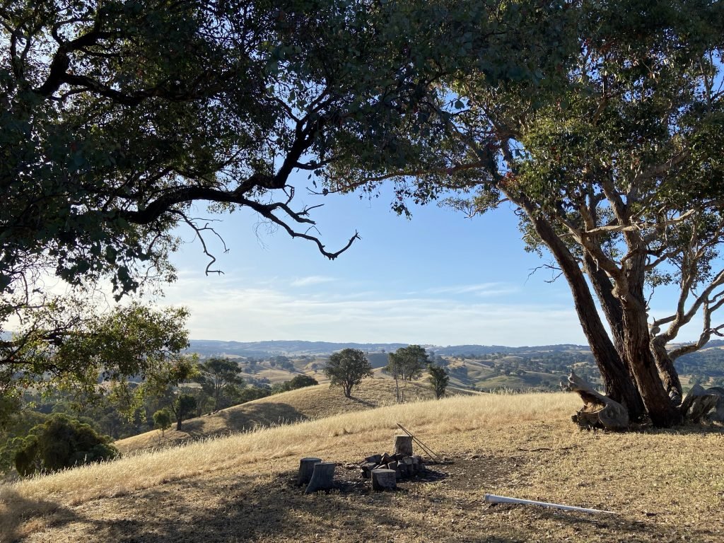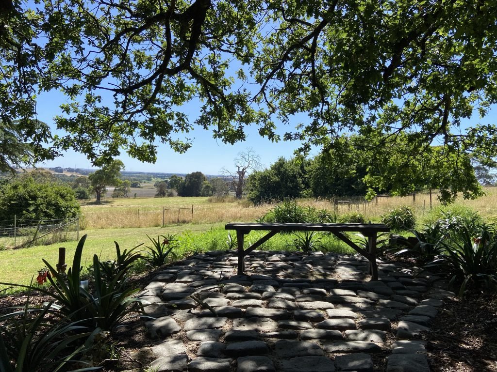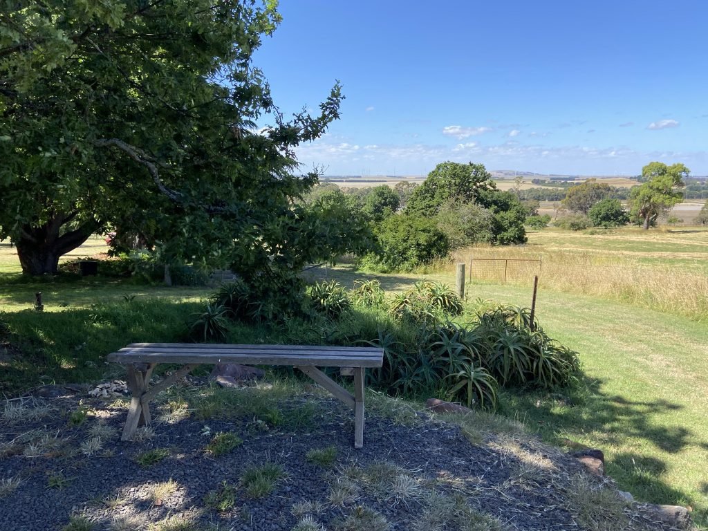 Another Bench under the same oak tree. They are both beautiful. The sheep are right next door today. There’s a warm breeze. The Black Cockatoos have been around all day…